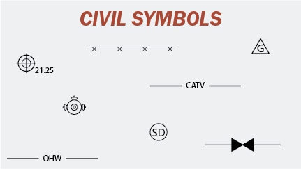 The civil engineering plan symbols in this article come from the US National CAD Standard or are typical symbols we have seen in civil sets.