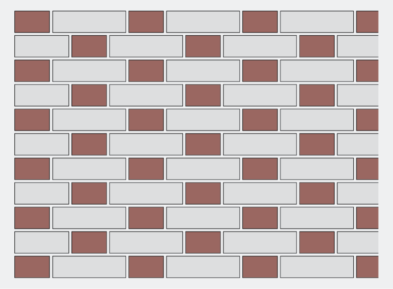 The brick bonds illustrated below represent the most common masonry coursing. From these bonds, an infinite number of bonds and patterns can be developed.