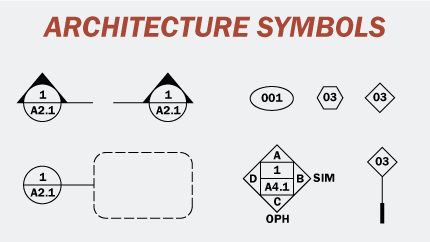 Examples of architectural floor plan symbols, including hatch patterns, that are using in construction drawings.