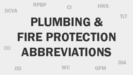 A list of typical plumbing and fire protection abbreviations used in construction drawings.